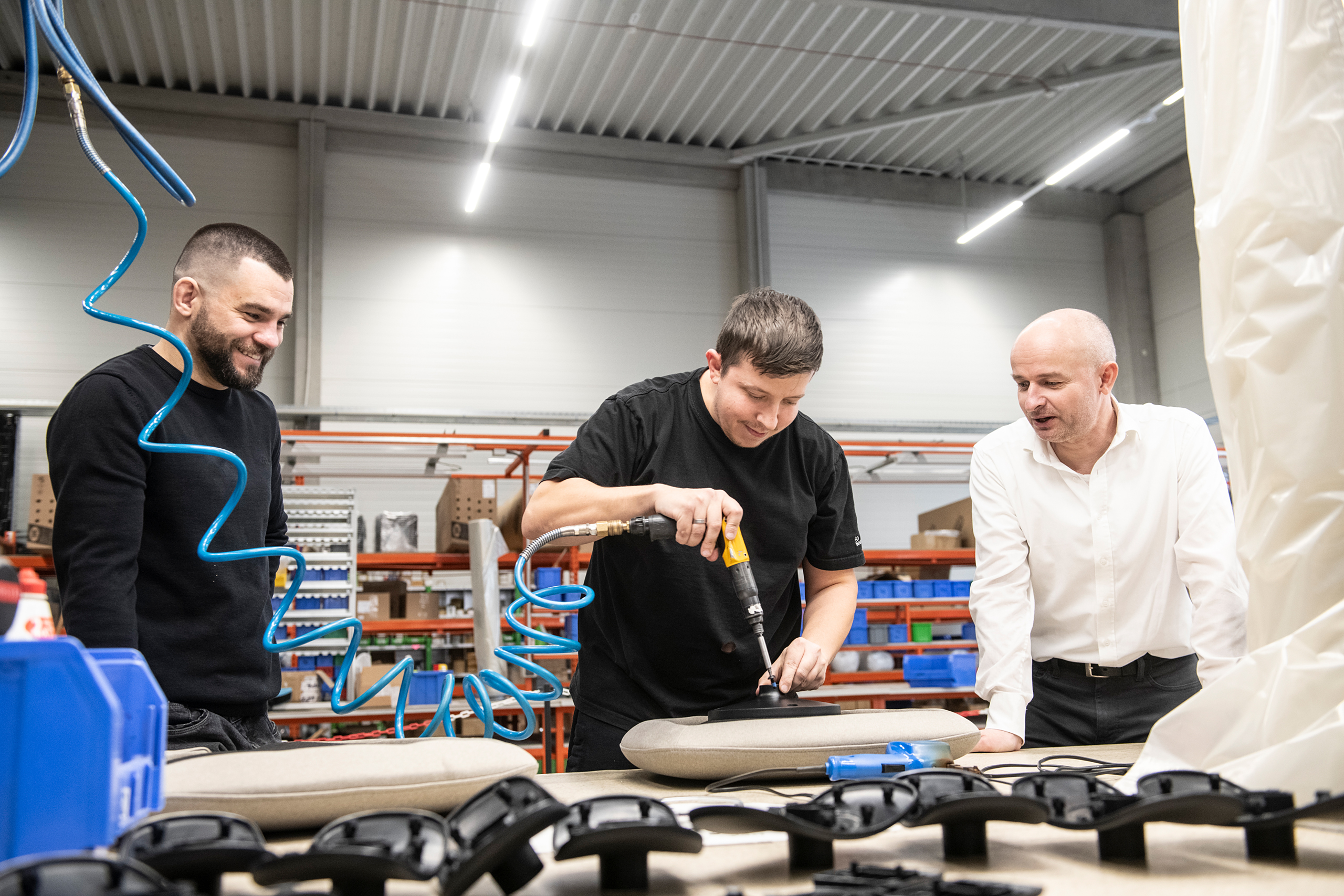Naším cílem je vyrábět co nejvíce komponent a celkově produktů přímo v naší výrobě v Boskovicích. Některé produktové série, jako například Nido, Seance nebo Spot, jsou až z 90 % lokálním výrobkem. Kovové konstrukce a inserty vyrábíme v naší dceřiné firmě KOV seating, korpusy vypěňujeme v další dceřiné společnosti PUR seating, sami si šijeme potahy, čalouníme a provádíme finální montáž – vše pod jednou střechou.