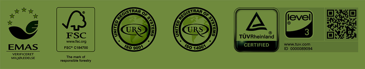 Jsme držiteli certifikátu EMAS, který je nástavbou ISO 14001. Tento ekologický certifikát je založen na přesné evidenci veškerého firemního odpadu, energií, zdrojů apod. a sledování jejich růstů, poklesů a držení v daných normách. Certifikaci mohou získat společnosti, které jsou ekologicky šetrné a minimalizují negativní dopady svého působení na životní prostředí nad rámec zákonem daných povinností. V prosinci 2022 jsme získali certifikaci FSC® (FSC-C184700). Tato certifikace potvrzuje původ a ekologické zpracování dřeva, ze kterého vyrábíme např. sérii Lotus. Forest Stewardship Council® je celosvětová nezisková organizace, která podporuje odpovědné lesní hospodářství a pomáhá pečovat o lesy. Certifikace FEMB LEVEL 3, kterou jsme v roce 2025 získali od nezávislého institutu TÜV Rheinland, potvrzuje splnění nejvyšších evropských standardů udržitelnosti. Dokládá zodpovědný přístup k výrobě, využívání materiálů i firemním hodnotám. Na získání dalších certifikací, které podpoří náš odpovědný přístup, pracujeme.